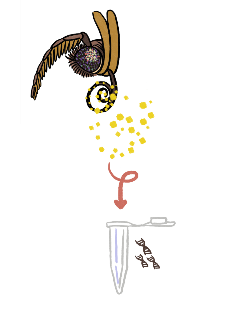 Pollination is a crucial ecosystem interaction, supported by nocturnal species. Moths have a complementary role to diurnal pollinators, providing unique and complex pollen transport links in plant–pollinator networks. Despite this, nocturnal pollination remains strikingly understudied; there are few existing pollination networks for Hong Kong or China. Pollination networks are often constructed through real-time observations of flower visitors. However, studies frequently omit moths because of artificial light required to see such interactions introduces bias. In the tropics, high plant diversity and vertical species distribution within tree canopies also create difficult conditions for traditional floral-visitation observations. The alternative approach- swabbing insect proboscises for pollen identification via light microscopy- requires time, identification skills, and is limited to the genus or family level. These pitfalls can be overcome with DNA metabarcoding!